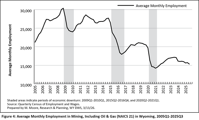 Moore, M. (2026, March). 2025Q2 quarterly update: Minimal Job Growth Continues, Led by Construction. Wyoming Labor Force Trends, 63(3). Research & Planning, WY DWS. Retrieved March 18, 2026, from https://doe.state.wy.us/LMI/trends/0326/a2.htm