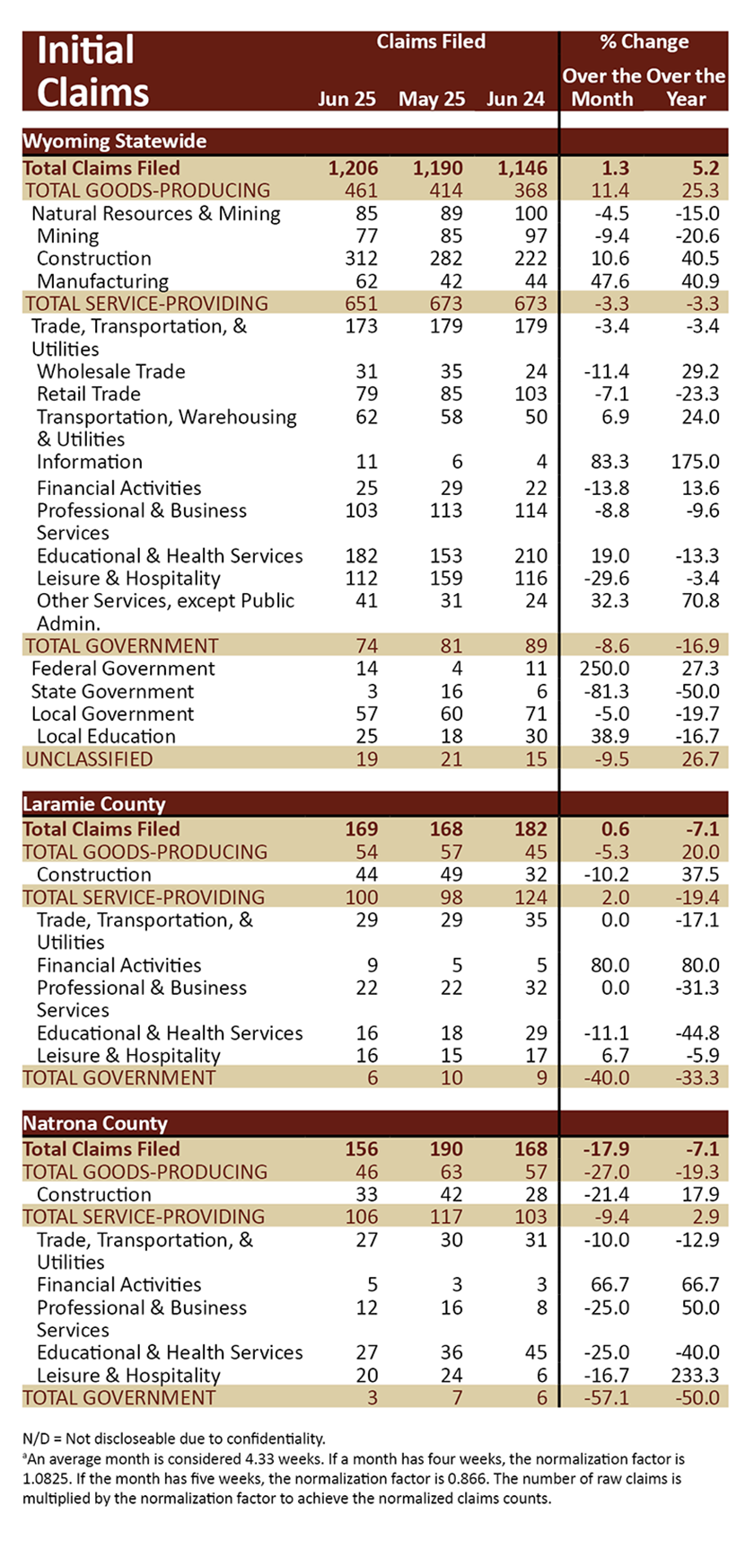There were 1,206 initial claims in June 2025, up 60 (or 5.2%) from June 2024. Note: the full Unemployment Insurance claims report for June 2025 is available by clicking here.