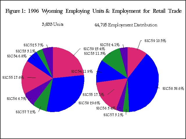 Figure 1:  1996 Wyoming Employing Units & Employment for Retail Trade