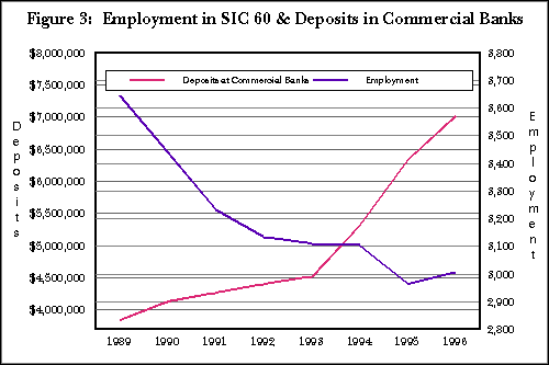 Figure 3:  Employment in SIC 60 and Deposits in Commercial Banks