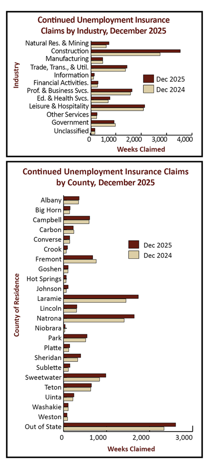 The total number of continued weeks claimed increased from 11,096 in December 2024 to 12,228 in December 2025 (1,132, or 10.2%). Note: the full Unemployment Insurance claims report for December 2025 is available by clicking here.