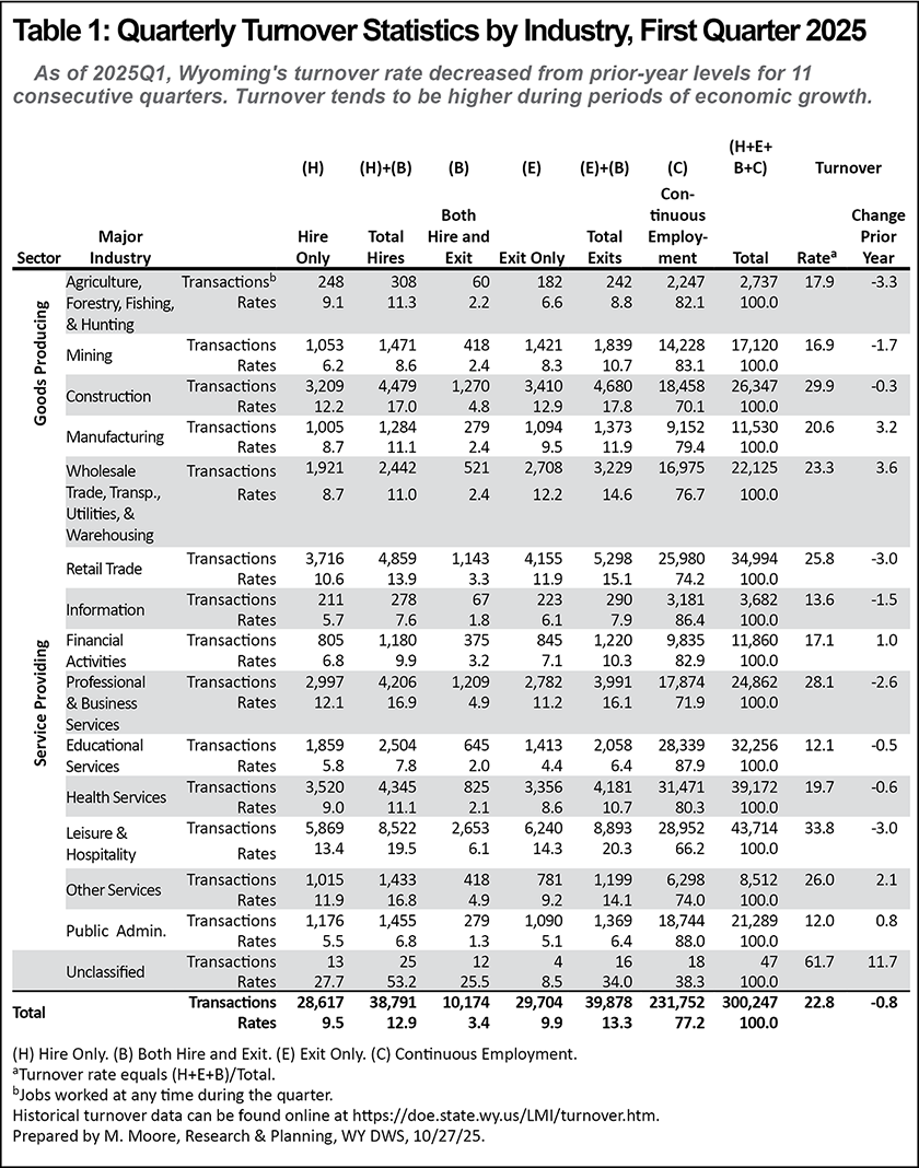 Quarterly Turnover Statistics by Industry, First Quarter 2025