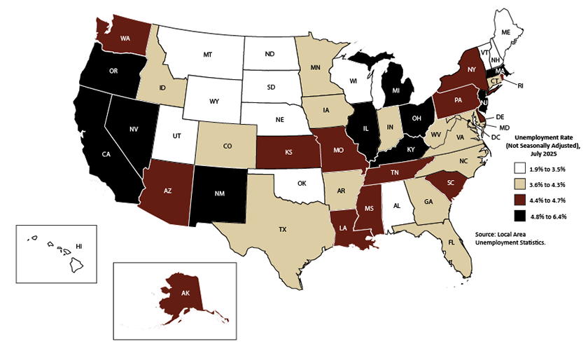 State Unemployment Rates, July 2025 (Not Seasonally Adjusted)