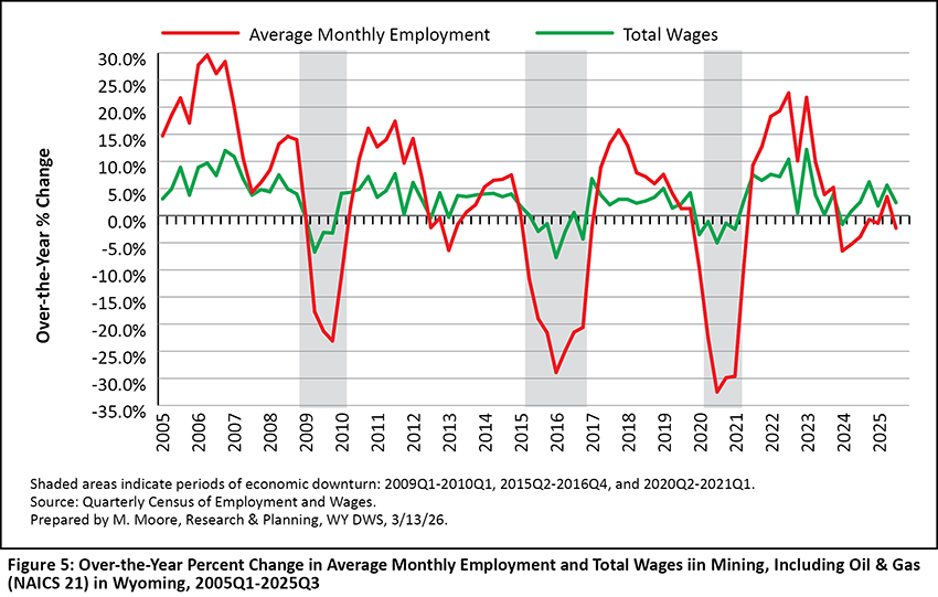 Moore, M. (2026, March). 2025Q2 quarterly update: Minimal Job Growth Continues, Led by Construction. Wyoming Labor Force Trends, 63(3). Research & Planning, WY DWS. Retrieved March 18, 2026, from https://doe.state.wy.us/LMI/trends/0326/a2.htm