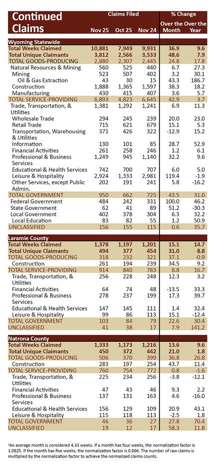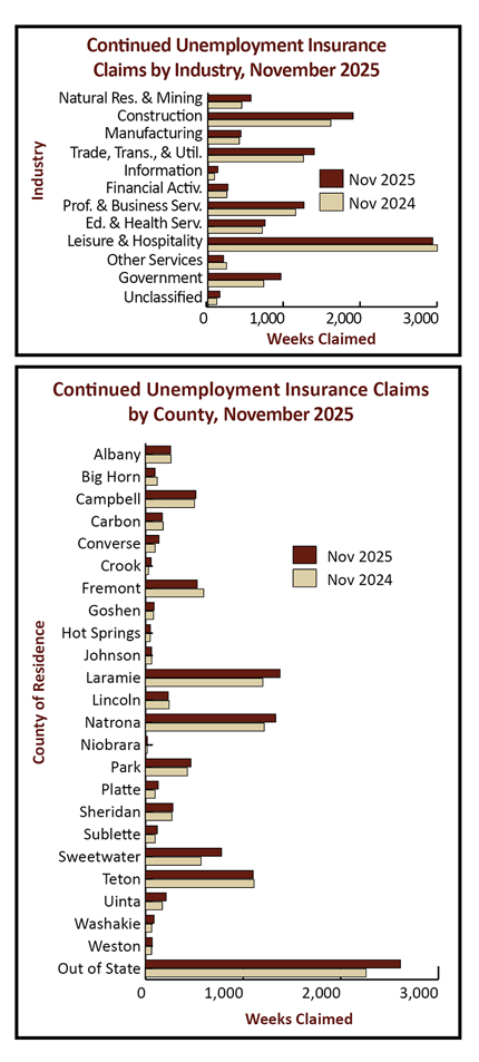 The total number of unique claimants increased over the year from 3,533 to 3,812 (279, or 7.9%). Note: the full Unemployment Insurance claims report for November 2025 is available by clicking here.