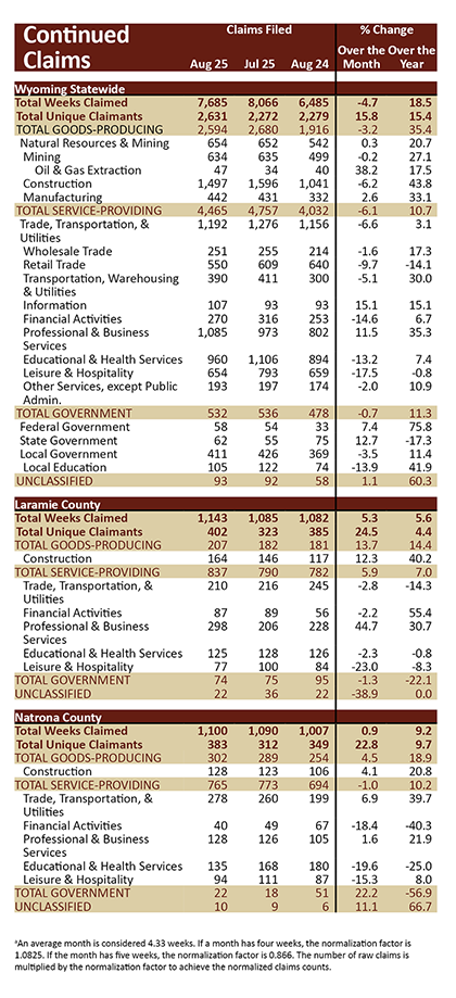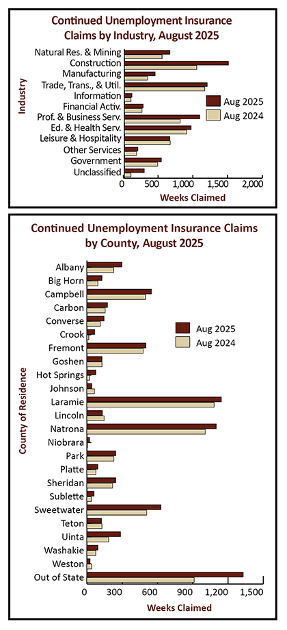 The total number of continued weeks claimed increased from 6,485 in August 2024 to 7,685 in August 2025 (1,200, or 18.5%). Note: the full Unemployment Insurance claims report for August 2025 is available by clicking here.