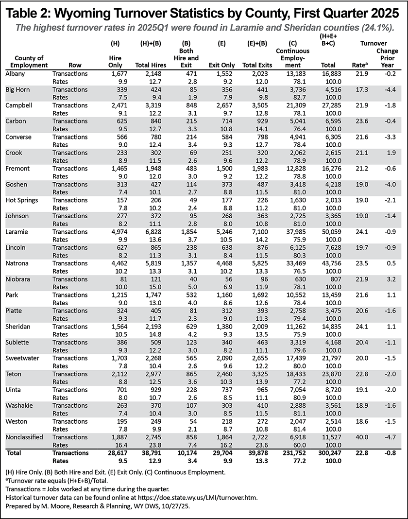 Quarterly Turnover Statistics by County, First Quarter 2025