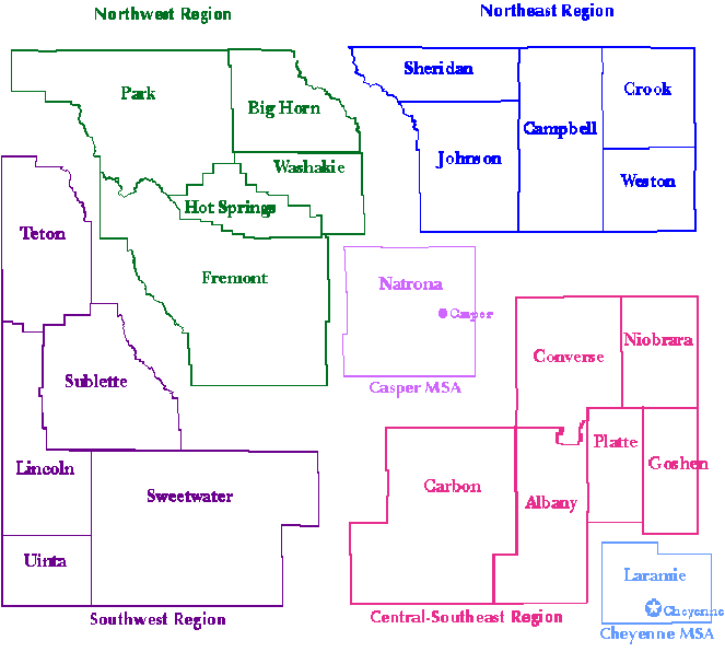Statistical Areas (MSAs), Casper and Cheyenne, shown in the map below. An